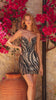 A fully sequined mini that shines in a wide array of color combinations and finishes. The sweetheart neckline and fitted cut enhance the figure with drama and sparkle. Choose from Black/Gold, Blue/Jade, and more.