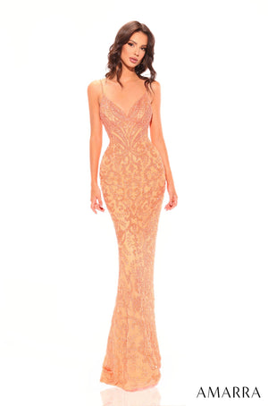Description: This resplendent masterpiece showcases superb tulle embellished with exquisite patterns made from delicate beading, embroidered sequin, and dazzling stone accents. Adding to this gown’s exquisite beauty are its dainty spaghetti straps adorned with glittering intricacies holding up its gorgeous sweetheart neck. To elevate the allure of this dress, it flows majestically in a fit and flare silhouette into a splendid sweep train. Stand out from within the crowd in this royal gown.