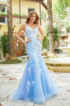 Description: Fall in love with this elegant, irresistible design. AMARRA 87317 is a fit and flare beauty made to contour and hold your body in all of the right places. Each appliqued iridescent sequin complements the floral design to give the gown a whimsical, fairytale feel. The subtle mesh v-neck adds a delicate touch to the neckline. The horsehair hem provides this stunning gown with structure and fullness and pairs exquisitely with the open-lace back. Any woman who wants to steal the show and look her best for any occasion will turn heads all night in this shimmery gown.