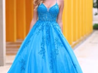 Ball Gown with Sheer Corset Bodice & Lace-Up Back
