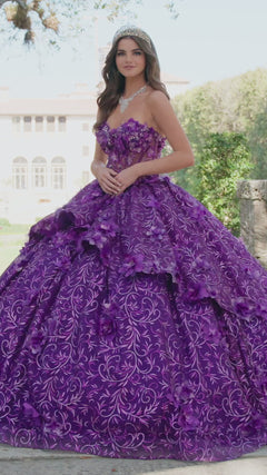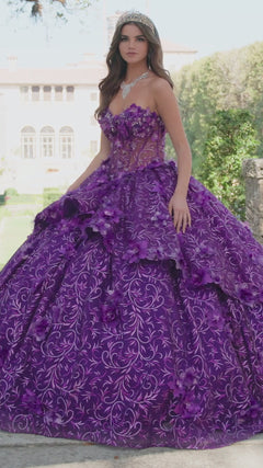 Material: Embroidered Lace with Three-Dimensional Flowers, Glitter Tulle, Stone Accents