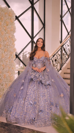 Step into a fairytale with our enchanting ball gown! Crafted from luxurious tulle, this dress showcases a breathtaking embroidered floral pattern. The sweetheart neckline and detachable off-the-shoulder sleeves exude romance, while the corseted waistline accentuates your figure. With its full-length, voluminous skirt and sweeping train, this gown promises a mesmerizing entrance at any event. Dare to dazzle in this timeless silhouette and become the belle of the ball!