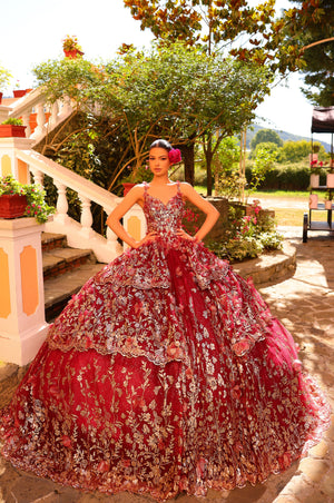 Description: We present this stunning quinceañera ball gown that radiates beauty and elegance. The thin shoulder straps exude grace, adorned with exquisite floral details. The dress features a captivating semi-sweetheart neckline, complemented by intricate embroidered lace, sparkling beadwork, and ravishing three-dimensional floral appliques, enhancing the ethereal tulle skirt's shimmer. To perfect the ensemble, a matching long-sleeved jacket is included. This gown is an excellent option for those who adore floral designs, inviting you to embrace your blossoming beauty. Let this exquisite dress be your symbol of growth and celebration!