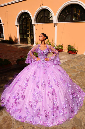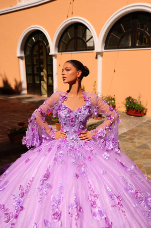 Fabric: Beading, Embroidered Lace with Three-Dimensional Flowers, Glitter Tulle, Stone Accents