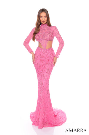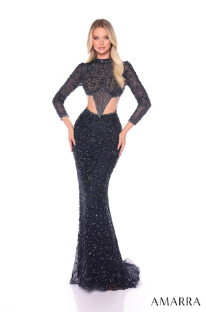 This stunning beaded fitted dress exudes sophistication and glamour with its sleek design and intricate details. Crafted from luxurious mesh, the floor-length silhouette is designed to hug the body while showcasing elegant sheer side panels for a daring yet refined touch. The high funnel neckline adds a modern, structured element, perfectly complemented by the long sleeves adorned with shimmering beaded embellishments that catch the light with every movement. A discreet zipper at the back ensures a seamless fit, making this gown an eye-catching choice for any upscale event or formal occasion.