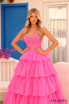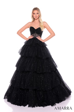 This enchanting strapless A-line dress is a perfect blend of elegance and modern glamour. The sweetheart neckline adds a romantic touch, while the bead embellished corset bodice brings a sparkling, eye-catching detail to the look. Crafted from lightweight tulle, the tiered floor-length ruffle skirt flows gracefully, creating a dreamy, voluminous silhouette. The back features a convenient zipper closure, ensuring a snug yet comfortable fit. Ideal for formal events, this dress combines classic design with contemporary details for a truly unforgettable ensemble.