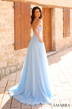 Description: This prom dress is a true embodiment of sophistication and style. The chiffon skirt flows gracefully, creating a dreamy look. The embroidered lace top features an illusion plunge neckline, adding a touch of femininity. The A-line silhouette drapes beautifully, allowing for effortless movement and comfort. The V-back adds an unexpected twist, while the boned corset bodice provides structure and support, ensuring a perfect fit. Get ready to make a grand entrance in this prom dress.