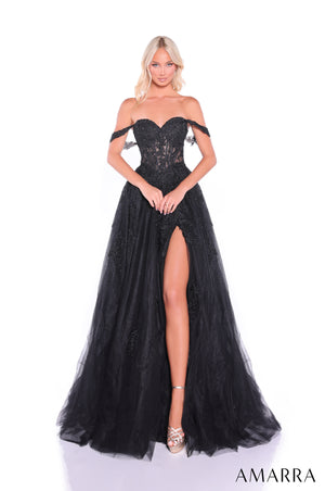 Special Features: Exposed boning corset, high slit, floral embroidery, structured bodice