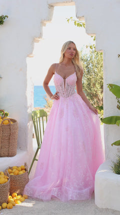Floral Appliqué Ball Gown with Thin Straps