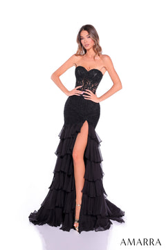 Corset Gown with Lace Appliqué and Tiered Ruffles